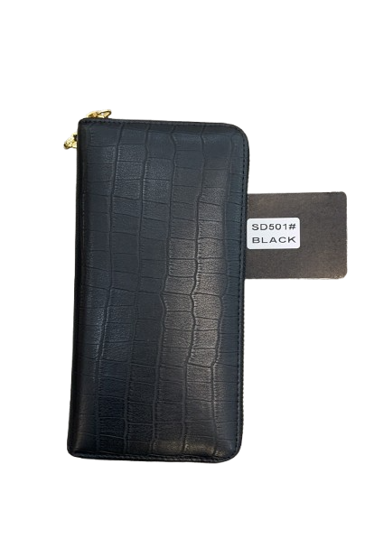 Sleek, secure, and stylish—the Black Zip Wallet is designed with a refined crocodile-embossed texture and gold-tone zipper hardware for a premium finish. This long wallet is perfect for keeping your essentials organized in style.